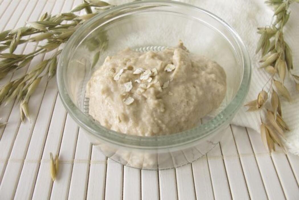 una cuchara de avena con un poco de leche hasta obtener una pasta espesa pero